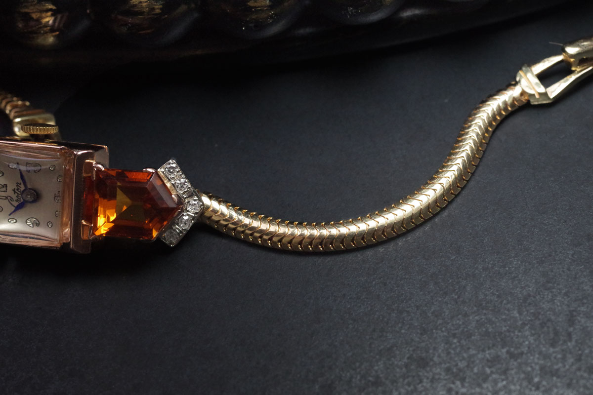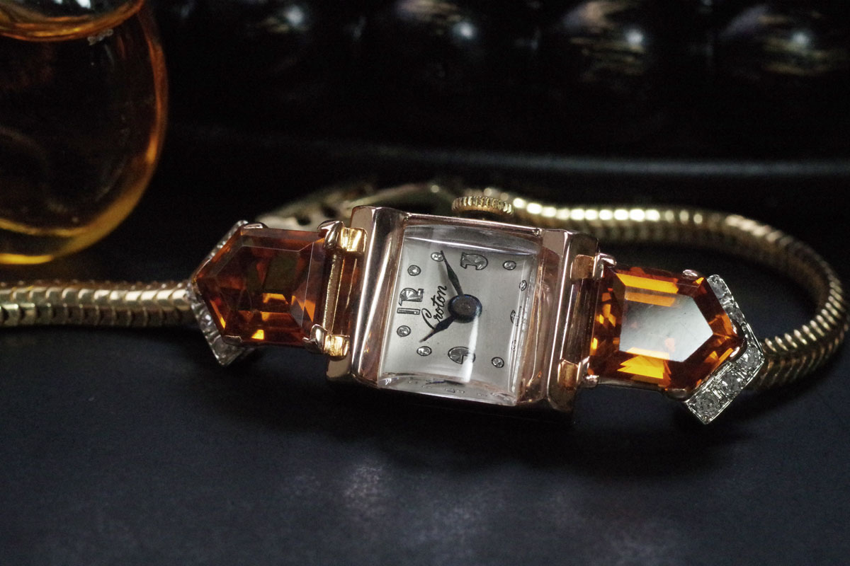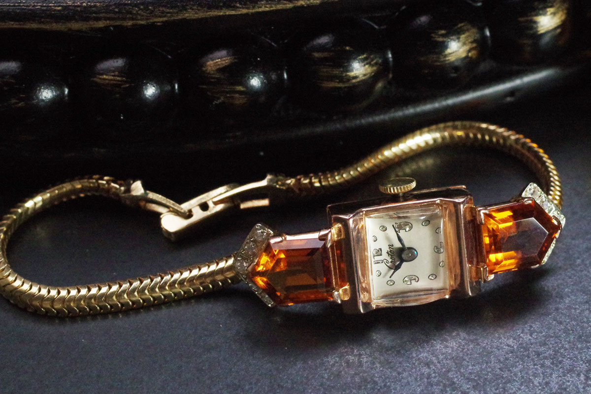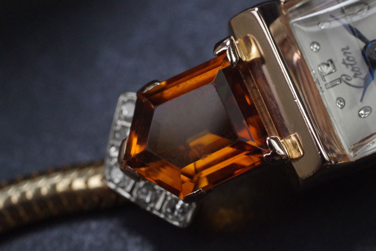 CROTON アールデコ 14金&シトリン・ダイヤモンド アンティーク時計 3761croton
