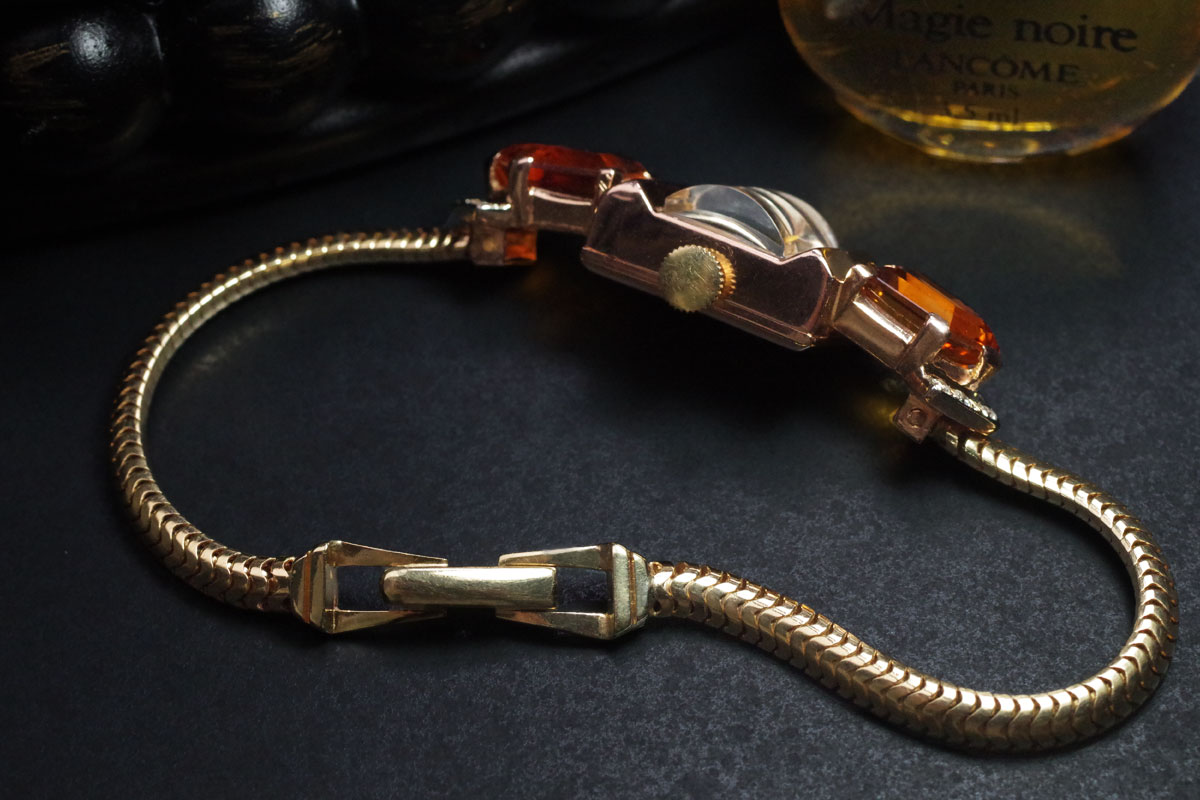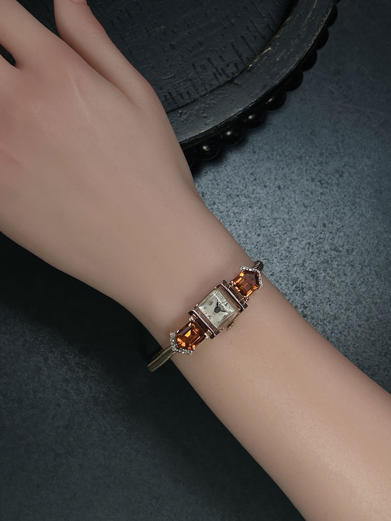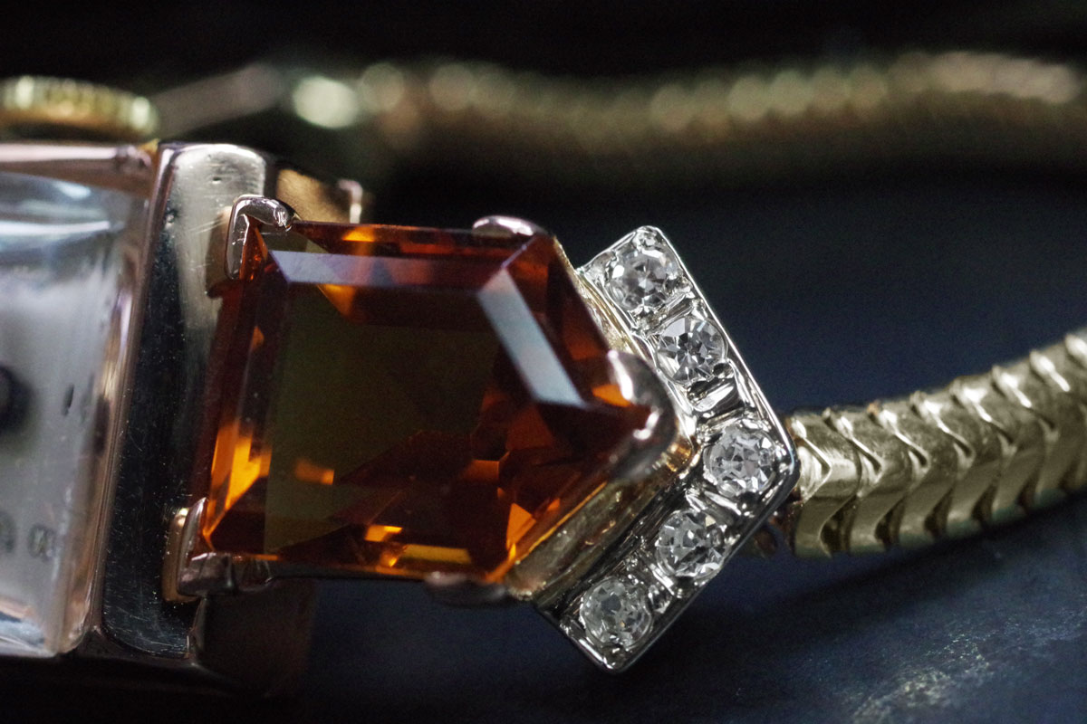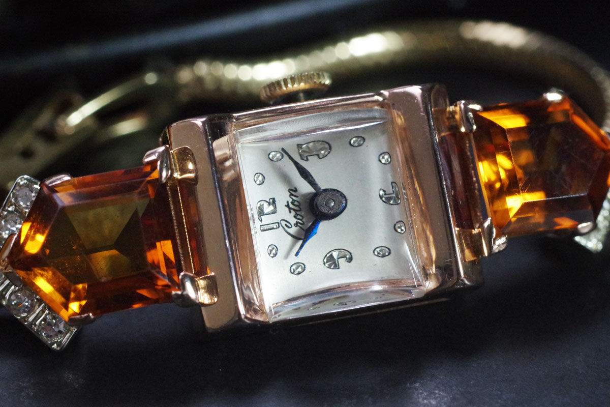 CROTON アールデコ 14金&シトリン・ダイヤモンド アンティーク時計 3761croton